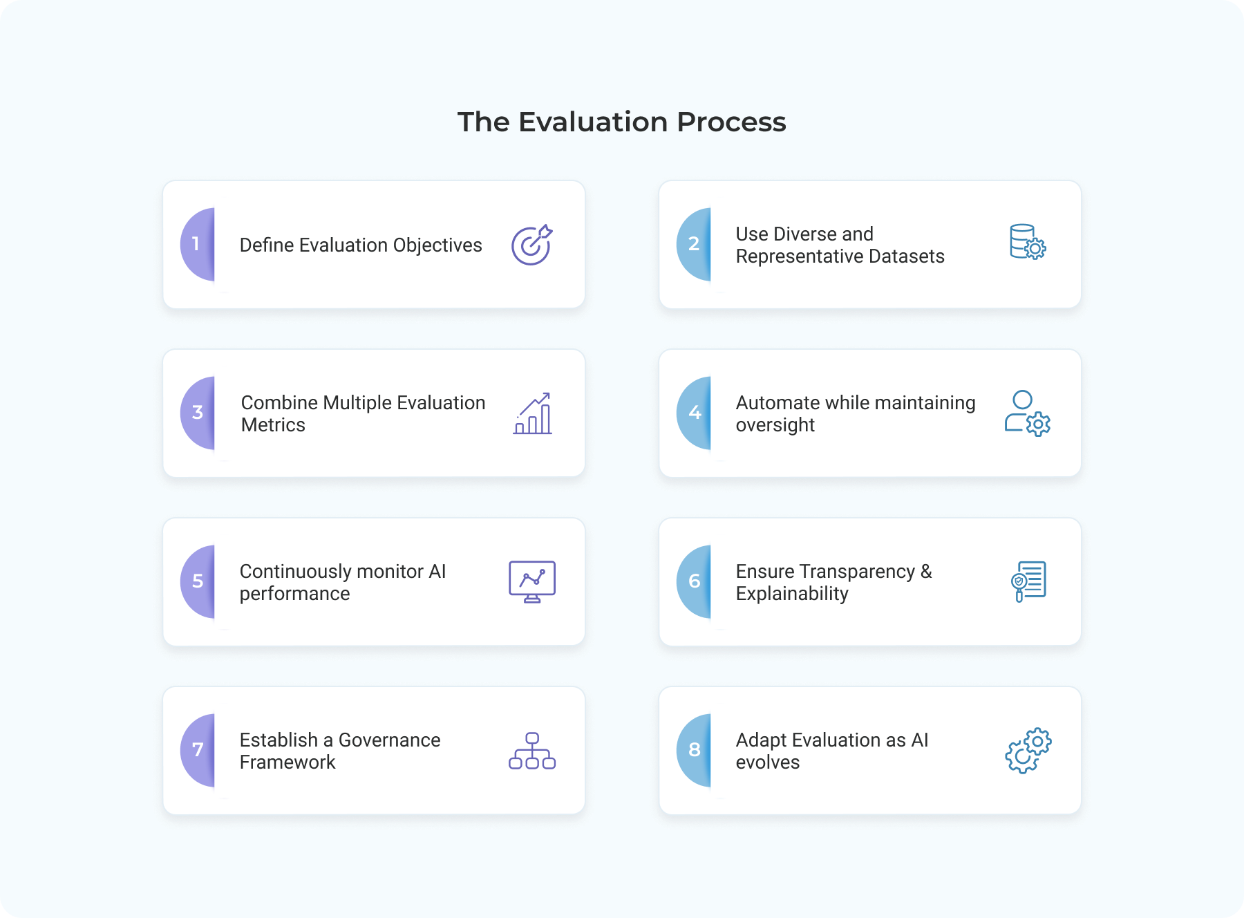 An AI Evaluation System is a well-organized framework designed to methodically assess and verify that AI models operate dependably in practical scenarios by measuring their accuracy, fairness, and resilience. This framework applies equally in evaluating the AI models themselves and the guardrails protecting them.